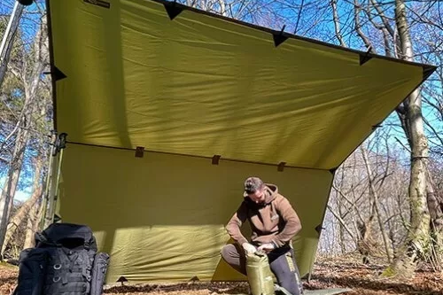 Tips and ideas to tie out your shelter to trees, including semi-permanent fixing points
